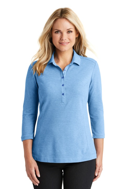A soft, laid back polo that s also hardworking. Designed to perform, this style fights odors, wicks moisture, and resists snags and wrinkles. It easily adapts to the 9 to 5 routine as well as time off the clock. Has a tag free label, a self fabric collar, an elongated 5 button placket with dyed to match buttons, set in, cuffed 3/4 sleeves. and front and back princess seams.