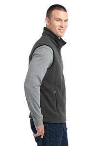 Ward off early morning chills by insulating your core with this soft cozy vest. Contrast rolled top collar zippered chest pocket reverse coil contrast zippers front zippered pockets with tricot lining binding at armholes and an open hem. Contrast Eddie Bauer logo embroidered on right chest. Made of 12-ounce 100% polyester fleece which incorporates Low Impact Technology for enhanced softness and performance.